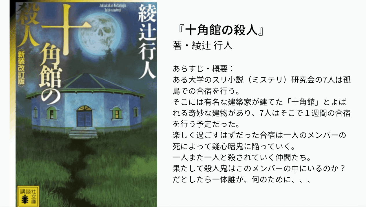 - タイトル: 十角館の殺人